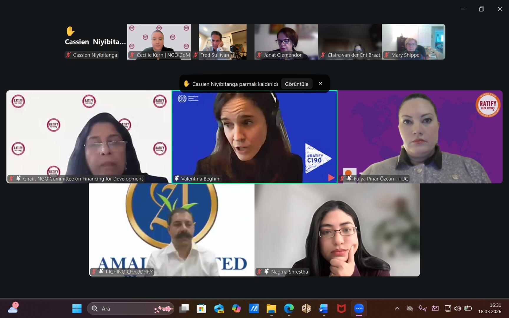 “Çalışma Yaşamında Adalet: Şiddet ve Yapısal Engellerle Mücadelede ILO 190’ın Uygulanması” başlığı altında Özcan, Uluslararası Sendikalar Konfederasyonu (ITUC) adına konuşmacı olarak yer aldı.
