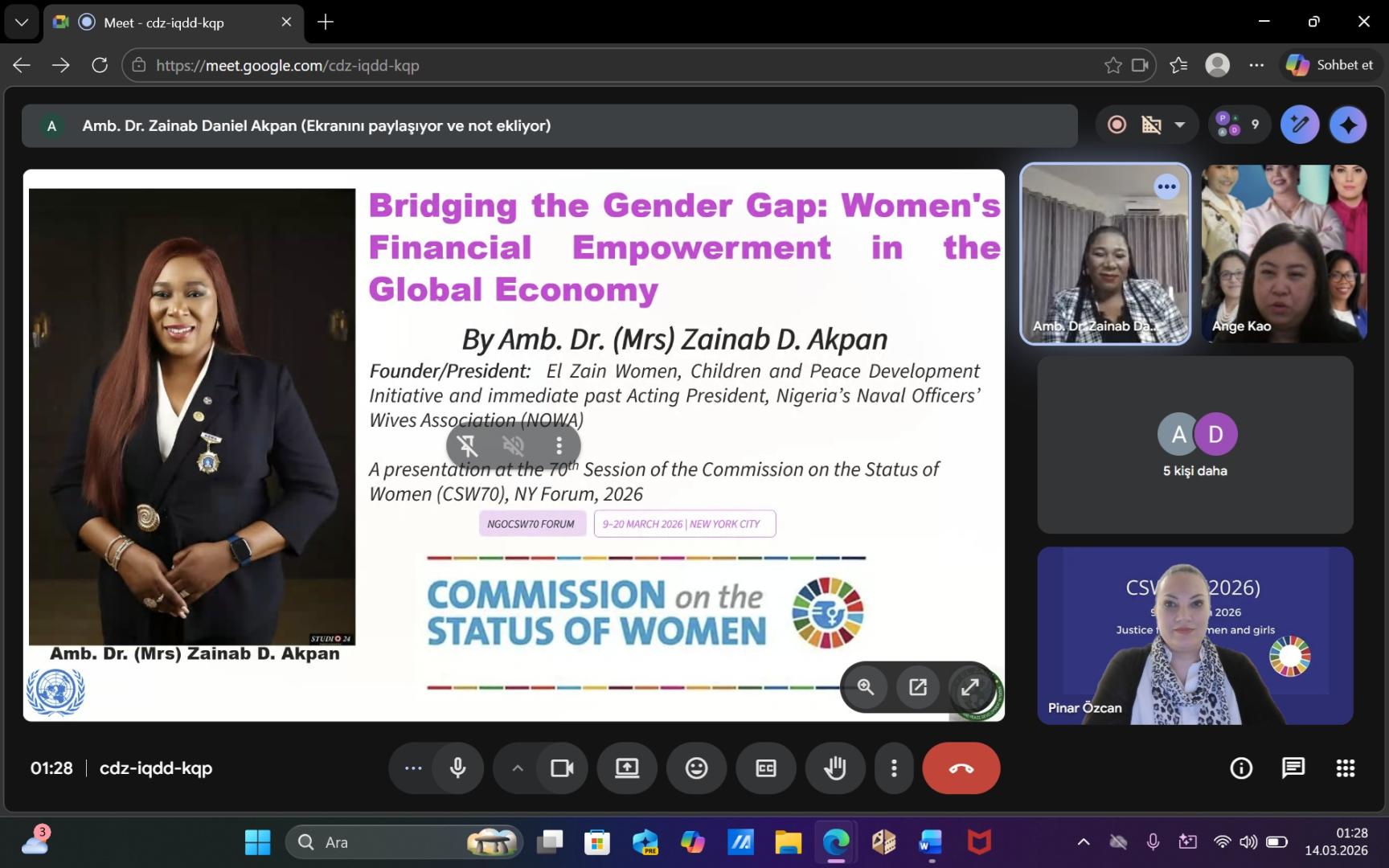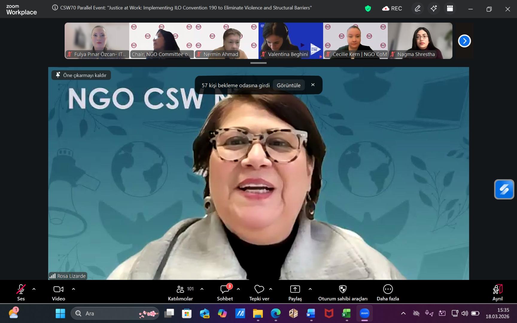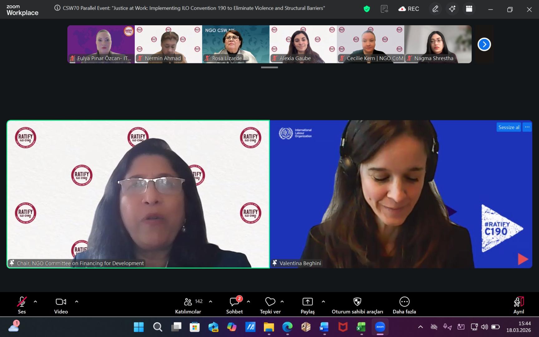 Özcan, CSW70 kapsamında iki ayrı uluslararası sanal yan etkinlikte konuşmacı olarak yer aldı ve sendikamızı uluslararası platformda temsil etti.